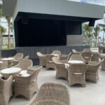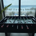 After a quick walk around the property (it’s small and you cannot get lost here), I decided to end the evening at the upstairs Lounge Bar.  It doubles as a sports bar and general bar for evening snacks and casual entertainment with multiple flat screen TV’s along with a foosball and pool table.  It had comfy seating, computer access, indoor and outdoor areas, and large windows to enjoy the marvelous ocean views (obviously you cannot do that at night, but I also came back during the day to take pics and the views were spectacular, especially seated outdoors).  The not so good–service was slow to non-existent, and the night bartender who was there on Wednesday was working very hard to look like he was enjoying himself.  Note to self:  avoid drunken political conversations here.  It’s a very nice bar but difficult to find.  I accidentally came across the initial doorway to the right of the outdoor theater, then I had to climb several flights of steps to reach another doorway, then I had to traverse across a rooftop to reach another doorway to the lounge’s interior.  I never found an elevator to this bar, so I’m not sure how mobility-limited guests could access this area.  Let me know if you found an alternative way to reach the Lounge Bar.