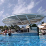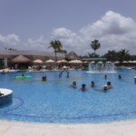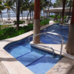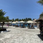 - Large beachfront pool. Although the overall resort is small, the pool is very large with lots of loungers and shade umbrellas. A swim-up bar was added in 2019, and it is continually busy. Also, check out the cabanas at the pool area; some of them are by the small, shallow circular pool (the pool which no one uses) but it’s only a few steps to get into the main pool. FYI: The main pool is deep (I believe it’s approximately five feet in depth). Be prepared to swim or float whenever you move away from the pool steps or gradual entry. If you need a flotation device, they have many of them for sale in the designated poolside hut. Try poolside dancing lessons or aqua aerobics (my fave) for some fun while you exercise.