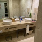 Here’s additional information about restaurants and dining opportunities. The open-air La Palapa buffet restaurant by the pool/beach is only open for breakfast and lunch. I tried it for lunch–you will have your temperature taken as well as given a set of plastic gloves for handling the buffet serving utensils. I thought the disposable gloves was a great idea. The food offerings were surprisingly limited for a buffet restaurant, but the street tacos in the Mexican food section were outstanding. Across the pool from La Palapa is Sorrento where you can order pizza, hamburgers, hot dogs, etc. Sorrento is a sit down restaurant, not a buffet, so no wet swimwear in either restaurant. For dinner I tried La Toscana (Italian) and Adelita (Mexican) a la carte restaurants–no reservations required for most a la cartes here. La Toscana was superior in terms of food and dining experience–why is it that Mexican a la carte restaurants at all-inclusive resorts in Mexico aren’t typically the greatest…I have no answer. If anyone is wondering what happened to the old Rauxa format, the resort’s dinner cabaret show, it is permanently closed. The resort is trying a new type of dinner show in the same theater building with a DJ and performances by local artists. I did not try it out, but it is LOUD in there–you can clearly hear the music outside the building while walking to/from the lobby. Dinner reservations are required at the new Rauxa. FYI: Although several a la cartes have A/C, they seem to be on a preset mode which doesn’t feel very cool, at least to me they weren’t, so be prepared to feel a bit warm during dinner.