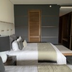 I stayed at this new adults-only resort in Oct. 2022. I chose a non-upgraded entry level Jr. Suite Tropical View since the resort’s price point was so very high–three nights in an entry level room for two adults with a price of around $900 p/night was a bit steep. During check-in I was asked if I wanted to upgrade my stay to Preferred Club for an additional $125 USD p/person p/night to which I politely declined. (The Preferred Club could have gotten me a room with a balcony Jacuzzi plus access to the rooftop pool/restaurant/bar). The regular check-in had multiple seated stations for guests, a very comfy seating area across the aisle, plus a small bar. There was even a cookie plate if you wanted a quick bite.
