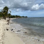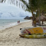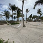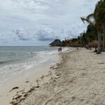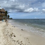 And now for the beach. The sand was nicely groomed with extraneous seaweed removed. There were many areas of various types of loungers including regular full loungers, what I call “nests” with two loungers enclosed, shade palapas, and hammocks. Lots of local flora was left intact leaving this beach area with a more natural feel and some natural shade provided as well. There were some non-motorized water sports equipment but no one was using them at the time I was at the beach. Don’t expect the turquoise sea color present in Cancun’s Hotel Zone; when the sun is out at best the sea color will be blue-green, but that is certainly expected at many beaches in this area of Mexico.