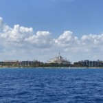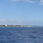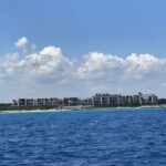 Since it’s only a two hour cruise, the catamaran goes up and down the immediate Riviera Maya coastline–once it heads out of the marina it goes south so that guests can see all three Xcaret resorts from the vantage point of being on the water, then it heads north until it approaches the pier at Playa del Carmen. Playacar Beach, one of my favorite beach areas in the Riviera Maya, was a highlight of this cruise; I saw many all-inclusive resorts in the distance which I easily recognized since I have stayed at many of them along this stretch of beach. Nice déjà vu moments…
