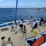 The catamaran played many recognizable American music hits as well as some Mexican songs which I did not recognize. After box lunches were distributed and there had been some time to eat, staff encouraged guests to come to the bow for some line dancing lessons. Kids seemed to really enjoy that activity. It’s not a free for all dancing session, there was structure to that time onboard, so if you’re not into line dancing you may not appreciate that part of the cruise.