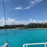 Since it’s only a two hour cruise, the catamaran goes up and down the immediate Riviera Maya coastline–once it heads out of the marina it goes south so that guests can see all three Xcaret resorts from the vantage point of being on the water, then it heads north until it approaches the pier at Playa del Carmen. Playacar Beach, one of my favorite beach areas in the Riviera Maya, was a highlight of this cruise; I saw many all-inclusive resorts in the distance which I easily recognized since I have stayed at many of them along this stretch of beach. Nice déjà vu moments…