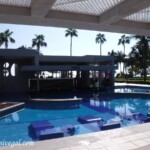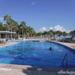Since it was mid-afternoon, I decided to change into my swimsuit and check out the pools. This resort offers five–the swim-up bar pool, the activities pool, family and disabled-friendly pool with gradual entry, beachfront infinity pool which offers a complimentary scuba class in the a.m. (probably not a good idea during COVID), and the private pool for guests staying in the adults-only Villa section. Riu Land, the “Kid’s Club”, is also supposed to have a small, shallow pool for the wee ones, but I did not personally check it out in order to verify that piece of info. While guests were still enjoying the swim-up bar pool, no drinks were being served at that particular bar. Instead, servers were bringing over trays of ordered drinks for guests to enjoy poolside. Guests can also stand in line at the pool bar to order drinks (you have to wear your mask to do this, however.)