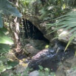 Cenote #2 (Saskaleen-Ha) was another partially open cenote which also included a seating area at the mouth of the cenote with only a couple of chairs, a small waterfall, and two kayaks. This was another very dark cenote–again, snorkelers would be wasting their time at this one.